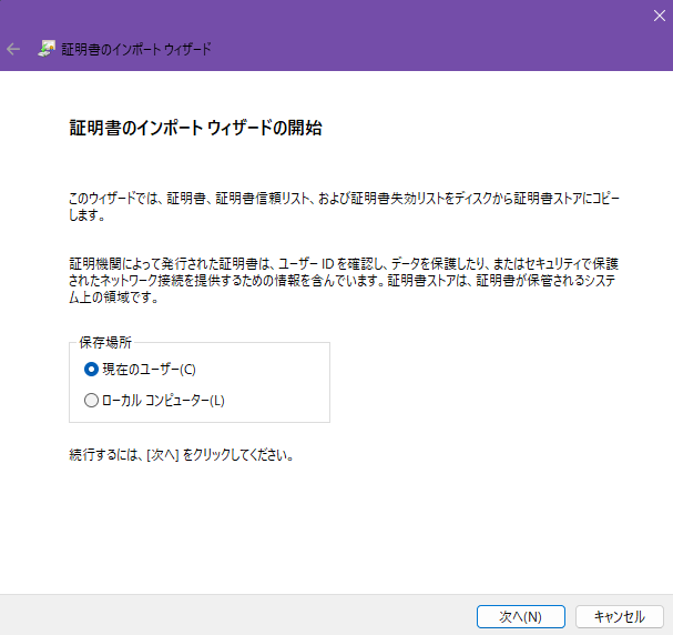 pkcs.p12 をダブルクリックしインポートしておきます。